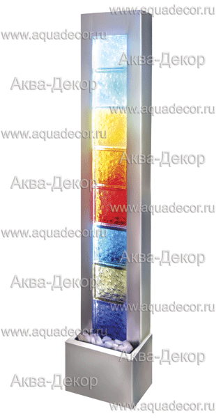 Стеклянные блоки ярких расцветок, по которым струится вода, настраивают на позитивный лад. Необычный водопад вызовет улыбку даже в самую ненастную погоду, и осветит интерьер всеми цветами радуги.
